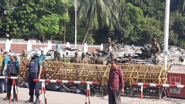 বঙ্গভবন মোড়ে জনতা, পুলিশ-সেনাবাহিনীর এপিসি-জলকামান মোতায়েন