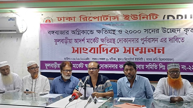 বুধবার (২৮ আগস্ট) বেলা ১২টায় সেগুনবাগিচার ঢাকা রিপোর্টার্স ইউনিটির সাগর-রুনি মিলনায়তনে আয়োজিত এক সংবাদ সম্মেলনে এ দাবি জানানো হয়। ফুলবাড়িয়া আদর্শ মার্কেট ক্ষতিগ্রস্ত দোকানদার কল্যাণ সমবায় সমিতি লিমিটেডের ব্যানারে এই সংবাদ সম্মেলন অনুষ্ঠিত হয়।