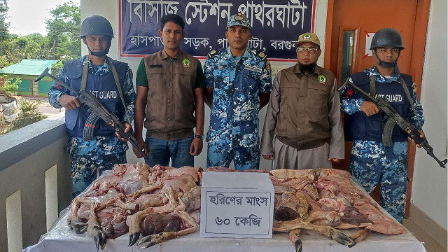 বরগুনায় ২৮০ কেজি হাঙর ও ৬০ কেজি হরিণের মাংস উদ্ধার
