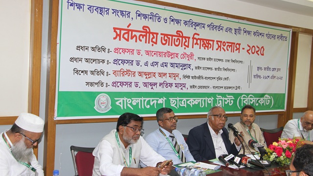 শনিবার (২৬ এপ্রিল) জাতীয় প্রেস ক্লাবের তফাজ্জল হোসেন মানিক মিয়া হলে বাংলাদেশ ছাত্রকল্যাণ ট্রাস্ট আয়োজিত ‘শিক্ষা ব্যবস্থার সংস্কার, শিক্ষানীতি ও শিক্ষা কারিকুলাম পরিবর্তন এবং স্থায়ী শিক্ষা কমিশন গঠনের দাবিতে সর্বদলীয় জাতীয় শিক্ষা সংলাপ-২০২৫’ এ এসব কথা বলেন ঢাবির সাবেক উপাচার্য।